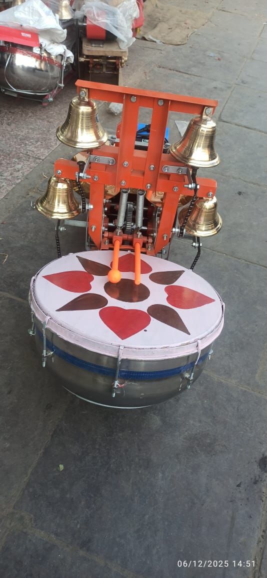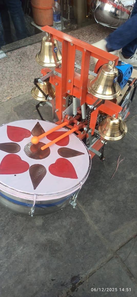 Craf Cooper fully Automatic Arti Machine or Temple Aarti Machine or Temple Drum Bell Machine or Arti Nagada Machine. Which are widely used in temples for religious events and occasions. Our product range is manufactured at our well-sourced fabrication unit using supreme quality raw material and is highly appreciated by our valuable clients for their latest designs and reliable performance. Automatic Electrical Temple Drum Bell Arti Machine. Temple electric drums with bells are used in hindu temples worldwide. This machine has one drum, four bells, operated by 220 volts electric power. The Main Objective of this invention is to totally eliminate the manpower required by electrically operating the device which is totally automatic .As it is made with a die casting process it has a solid material with an antique outlook . Therefore this art is perfect for gifting .Electric Arti Machine bring the sound clarity ,which makes you get into a situation when you understand more thing than before. These Voices increase your concentration ,keep you alert .It also removes the negative thoughts on your mind.