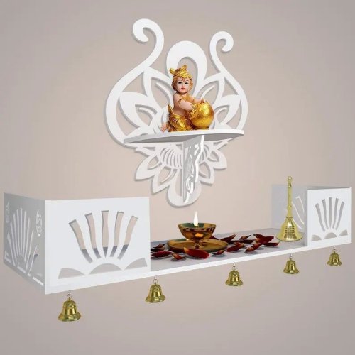 Krishna White Wooden Shelf Temple