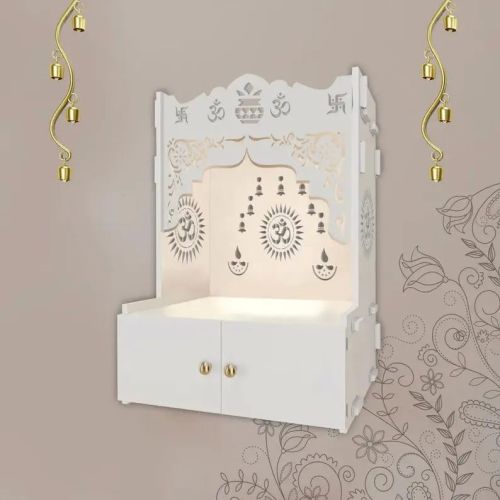 om swastik kalash symbol white wooden temple